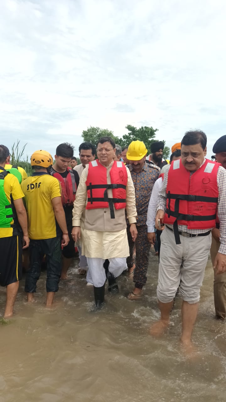 हरिद्वार। मुख्यमंत्री पुष्कर सिंह धामी ने बृहस्पतिवार को जनपद हरिद्वार की तहसील लक्सर के विभिन्न क्षेत्रों-लक्सर बजार मदारपुर, शाहपुर बस्ती, प्रहलादपुर, हस्तमौली में अतिवृष्टि एवं सोनाली नदी के कारण हुये जलभराव से प्रभावित क्षेत्रों का रेस्क्यू बोट एवं ट्रैक्टर में बैठकर स्थलीय निरीक्षण किया।